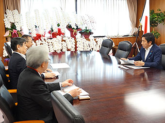 令和元年9月27日に日本弁理士会の清水善廣会長並びに日本弁理士政治連盟の水野勝文会長及び福田伸一筆頭副会長は、経済産業省の大臣室に菅原一秀経済産業大臣を表敬訪問しました。